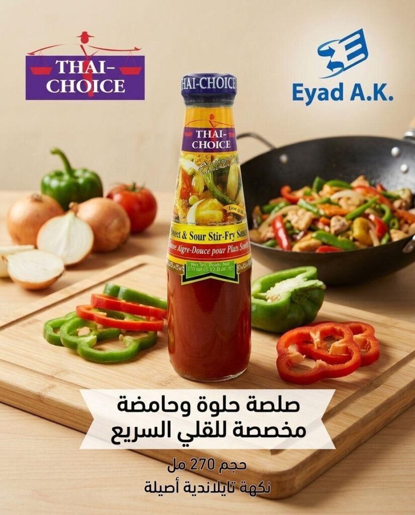 Thai Choice’s Sweet & Sour Stir-Fry Sauce isn’t just a sauce; it’s the perfect balance of sweetness and tang, giving your dishes an authentic Asian touch and an unforgettable flavor. Whether with chicken, vegetables, or even noodles… every bite will be bursting with flavor, shiny, and tempting, just like it came from a fine-dining restaurant kitchen. Ready to use, with a rich texture and professional shine, this 100% authentic Thai flavor is now available from Eyad Abdul Karim Import and Distribution Establishment.
